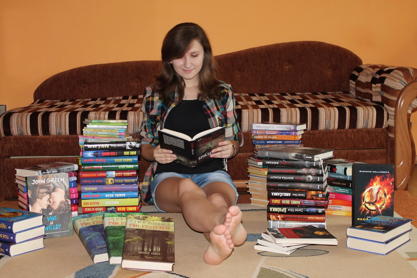 A potom sme sa pustili do fotenia. Minuloročné fotenie sa nieslo v duchu Majka + gitara a tohtoročné Majka + knihy. Preto bolo najskôr potrebné vybrať takmer všetky Majkine knihy z políčok a všetko pekne naaranžovať. Samozrejme, chcela novú profilovku. :D Ale ja fotím rada, čiže som s tým vôbec problém nemala. Majka sa iba párkrát prezliekla a ja som už iba cvakala. Fotky si môžete pozrieť ďalej v článku. :)